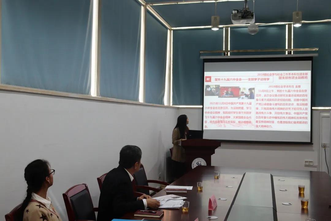 座谈会上,班长杨郡、团支书黄旭、学习委员娜依兰·海米提、前任班长张金波4位学生代表发言,分享了自己在学习实践中的心得体会和成长收获。班长杨郡从思政教育、学风建设、社会实践、生涯就业、荣誉表彰等多方面汇报了团支部的工作进展情况,体现了坚持“党建带团建”、“党史学习教育进团学”、“校党员领导干部联系团支部”建设下的良好成果。