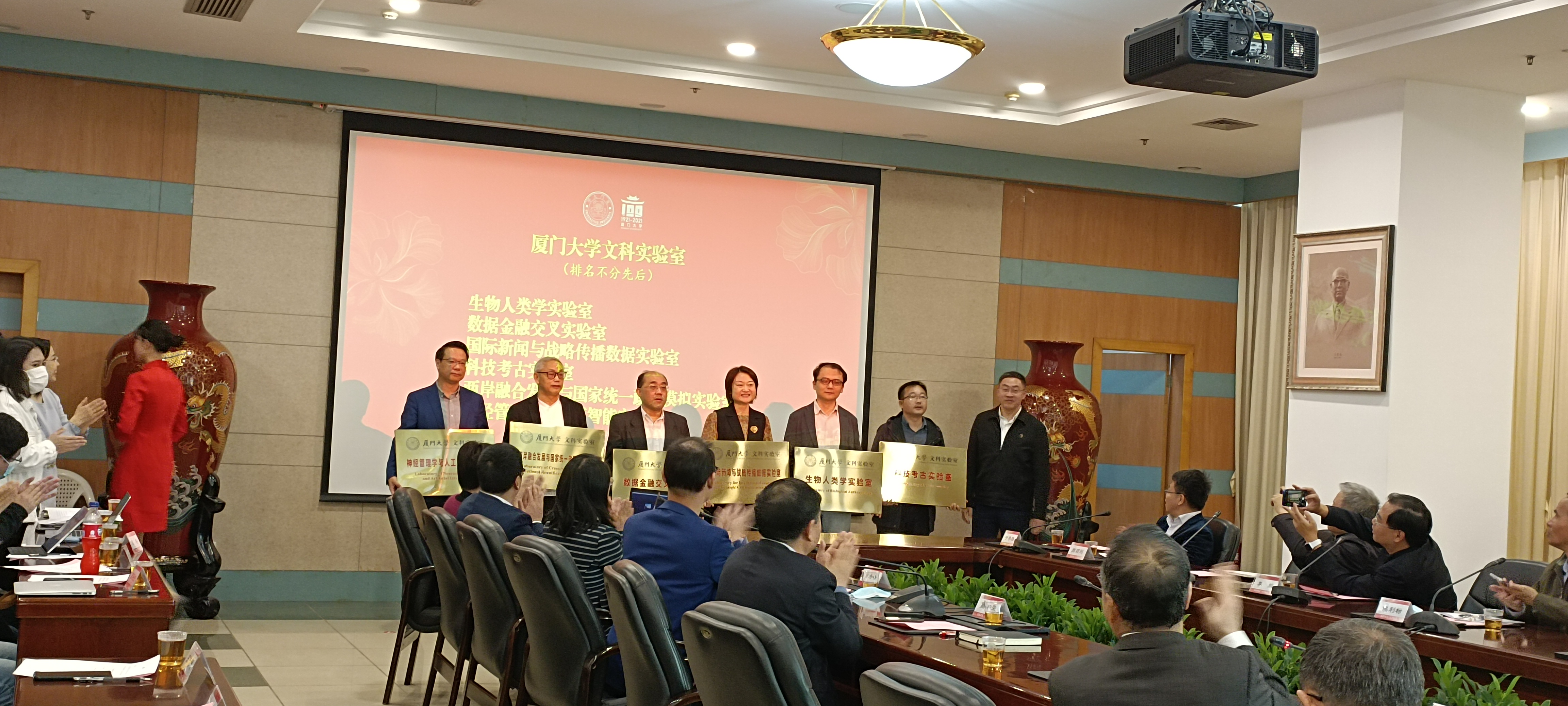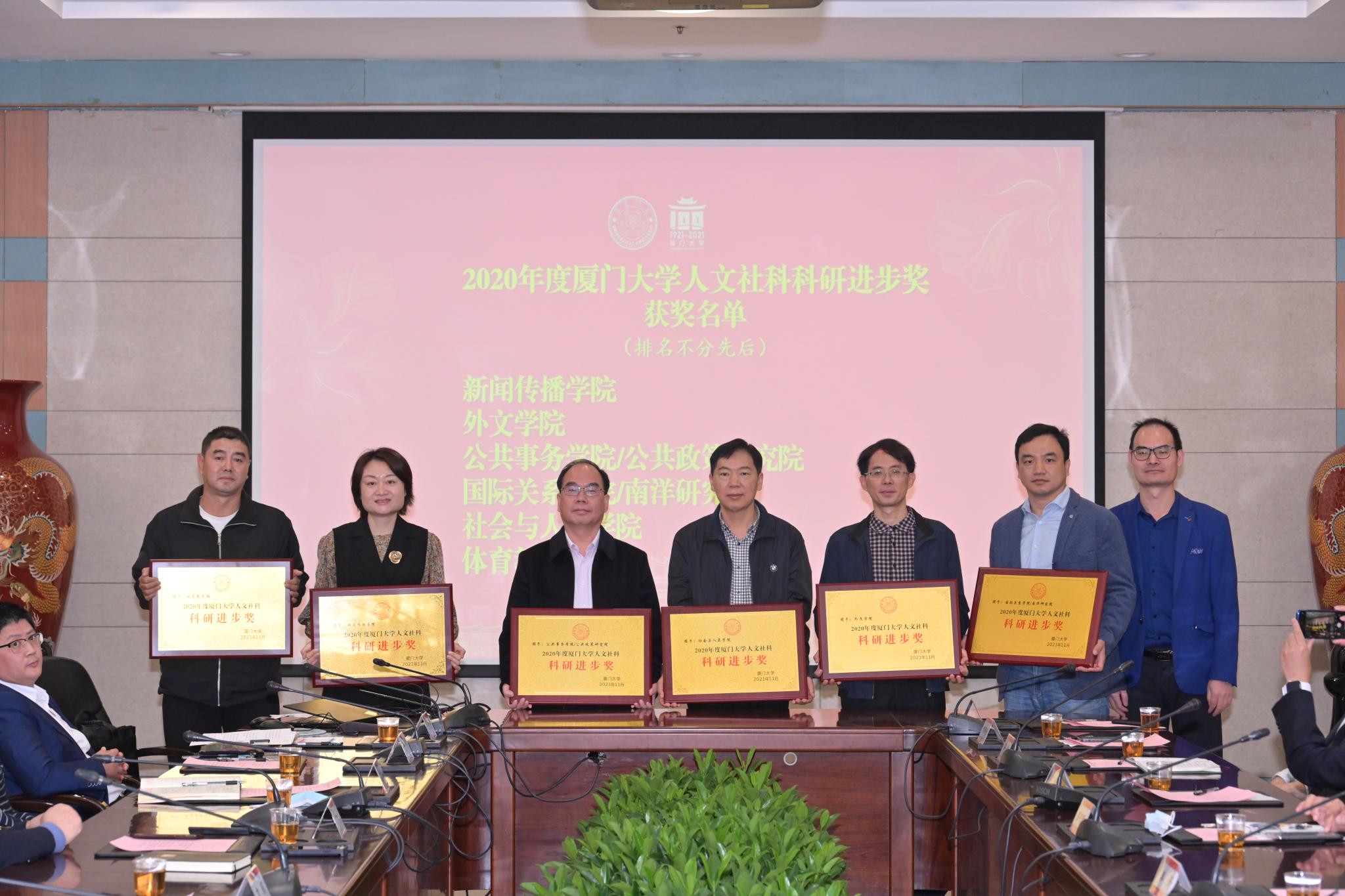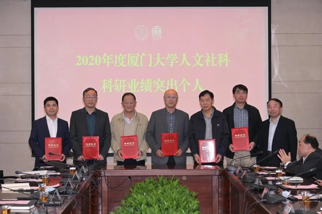 随后,厦门大学2020年度人文社科科研业绩突出单位、突出个人颁奖仪式和厦门大学新文科实验室授牌仪式先后举行。我院荣获“2020年度厦门大学人文社科科研进步奖”,胡荣教授、童敏教授、张亚辉教授、王传超教授、阳妙艳副教授等荣获“2020年度厦门大学人文社科科研业绩突出个人”。荣誉的取得是对我院建院以来全体师生齐心协力在科研工作上努力的肯定。另外,我院王传超教授主持的生物人类学实验室成功入选“厦门大学新文科实验室”,并获现场授牌。