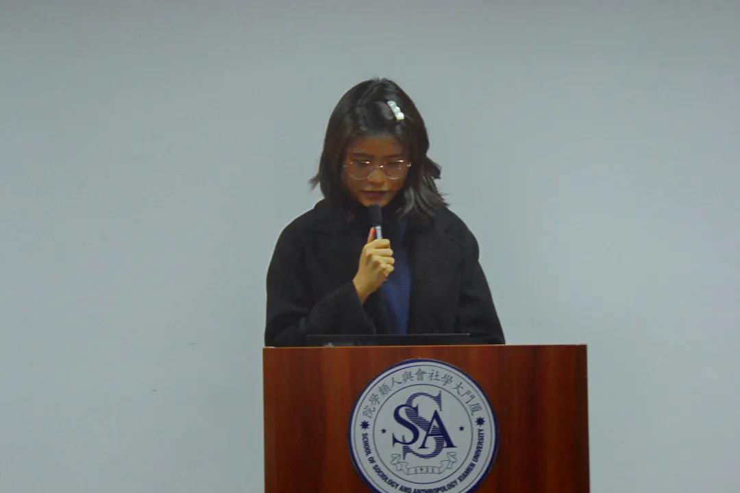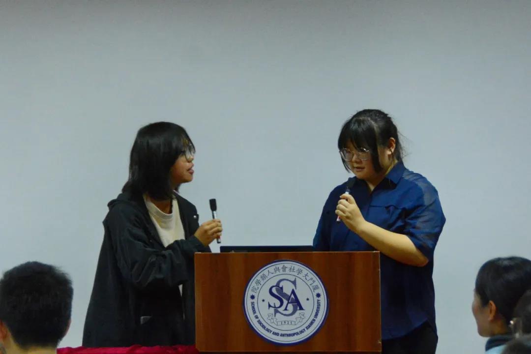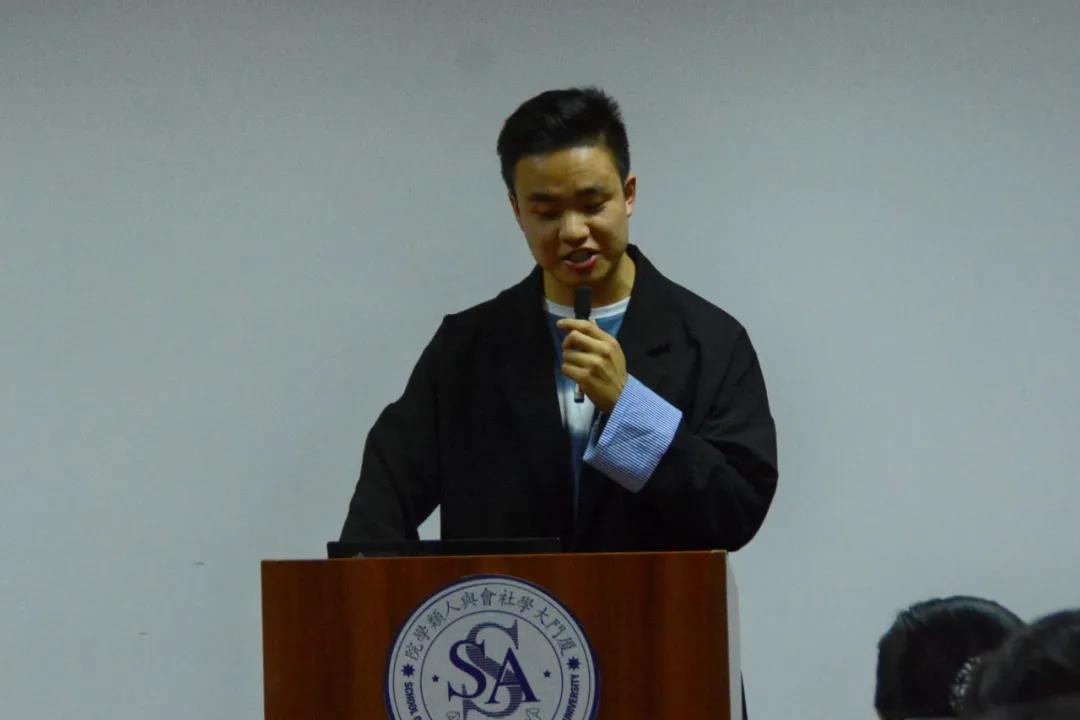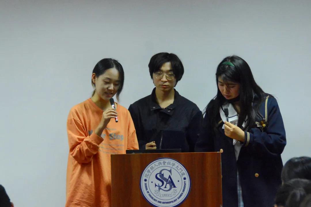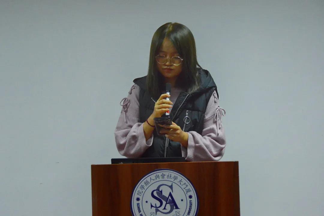 2021年12月5日19点,“青春留声 献礼百年”社会与人类学院首届红色影视作品配音大赛决赛在曾呈奎楼B栋208室举办。我院党委副书记毛毛老师、人类学与民族学系副教授刘家军老师、社会学系助理教授汪子臻老师、团委书记石林伟老师、辅导员冉丽莎老师、科研秘书戴欢老师、财务秘书龚文菁老师出席本次大赛,现场还有来自不同年级、不同专业的60余名学生观众参加。本次大赛由2020级本科生黄拯之和2021级本科生王婧雯主持。