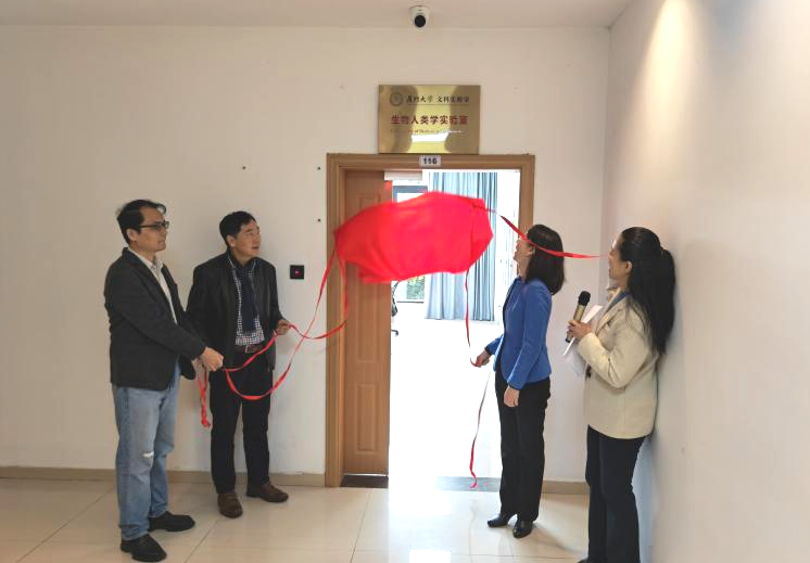 随后,王晓丽书记、胡荣院长、冯文晖副院长、王传超教授共同为生物人类学实验室揭牌。