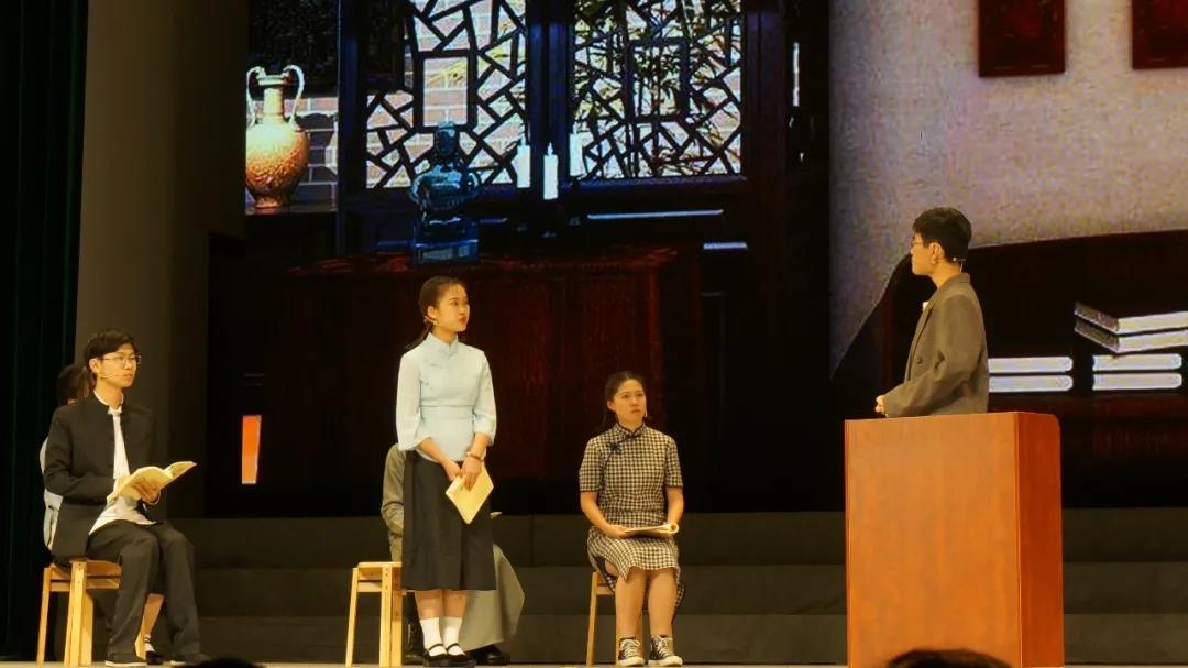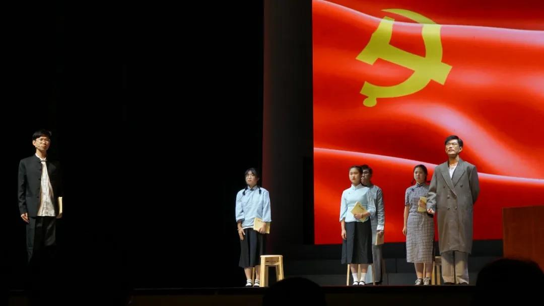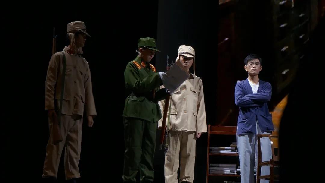 最后一幕,林惠祥先生站在三尺讲台前向同学们讲诉着祖国过去经历的苦难和自己的革命热情,同学们积极响应,剧目最终在师生激昂的宣誓“我愿奋斗终身!”中圆满落下帷幕。