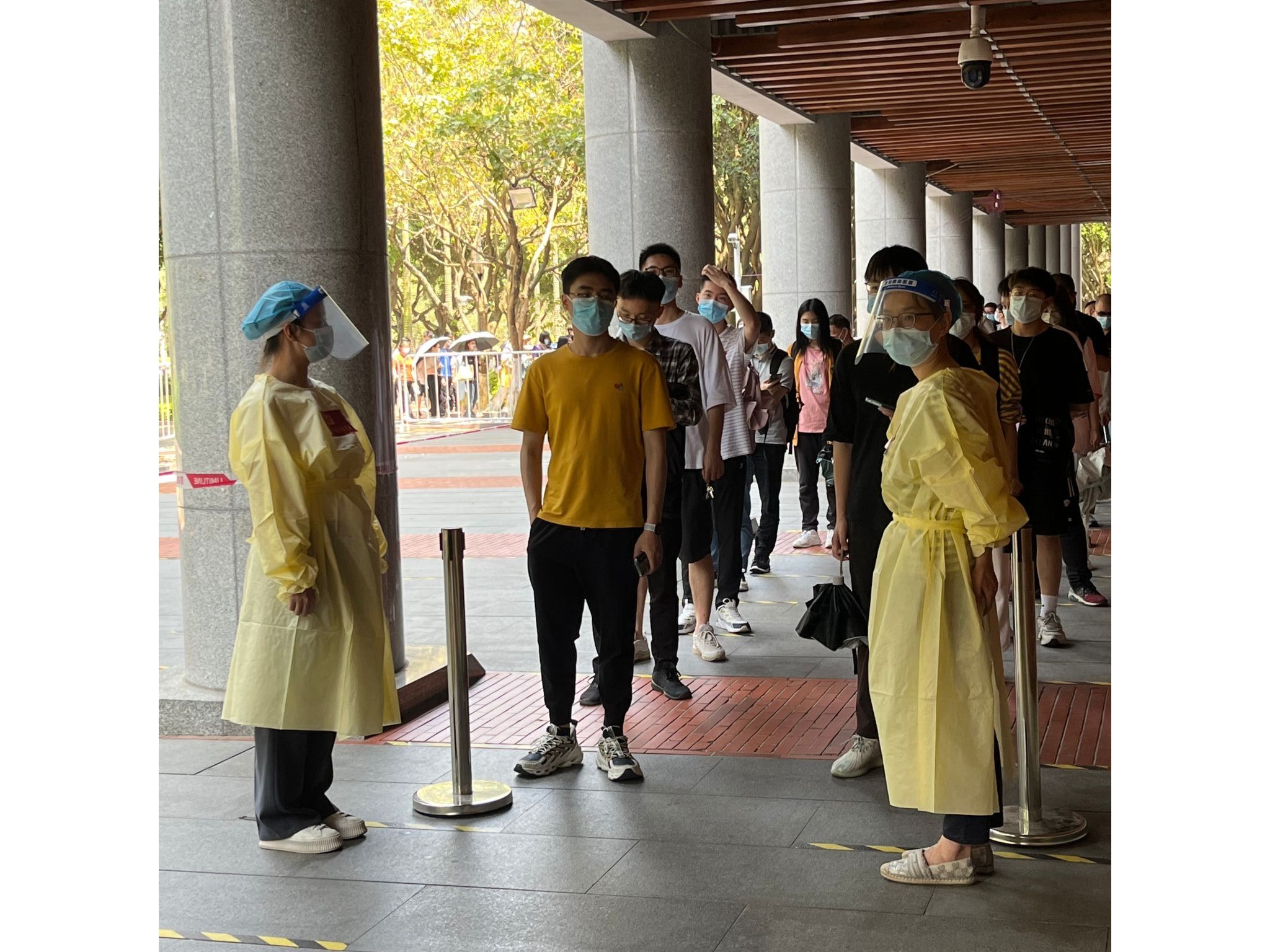 5月5日,学院10名核酸检测志愿者再出发,助力学校思明校区新一轮核酸检测工作。