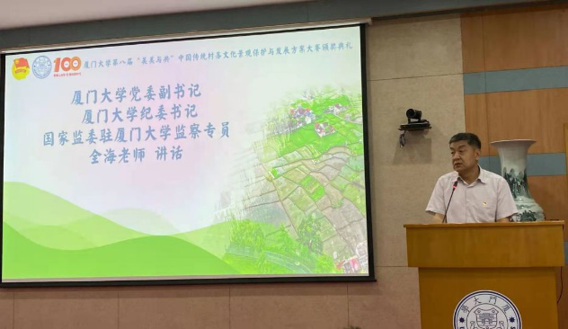 校党委副书记、纪委书记全海老师进行总结与点评,他表示,借助“美美与共”比赛这一平台,这么多不同专业的青年学生走出象牙塔,真正走到田野中去,深入村落,融入当地人的生活,与老百姓同吃、同住、同劳动,这既是一堂生动的沉浸式思政教育课、也是劳动教育课!全海要求,希望大赛践行习近平总书记“用脚步丈量祖国大地,用眼睛发现中国精神,用耳朵倾听人民呼声,用内心感应时代脉搏”的号召,在选题上更加贴近人民、贴近国家和社会关切;希望我院继续以党建引领事业发展,推进党建工作与学院事业改革发展深度融合,立足学科特色,打造育人平台,深入落实“五育并举”,全面推进“三全育人”;希望厦大青年牢记习近平总书记“坚定不移听党话、跟党走,努力成长为堪当民族复兴重任的时代新人”嘱托,树立远大理想,脚踏实地、勤学苦练、练就过硬本领,以实现中华民族伟大复兴为己任,不负时代,不负韶华,不负党和人民的殷切期望!