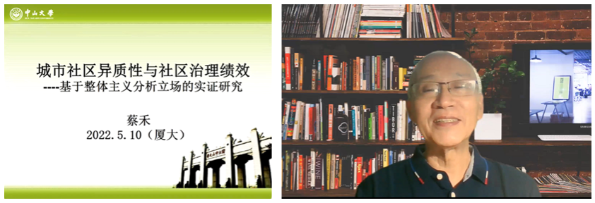 2022年5月10日,厦门大学社会与人类学院邀请(中国)社会变迁研究会副会长、中山大学城市研究中心蔡禾教授做客至善大讲堂,带来了“城市社区异质性与社区治理绩效——基于整体主义分析立场的实证研究”精彩讲座。社会与人类学院社会学系副主任陈福平教授主持了该讲座。