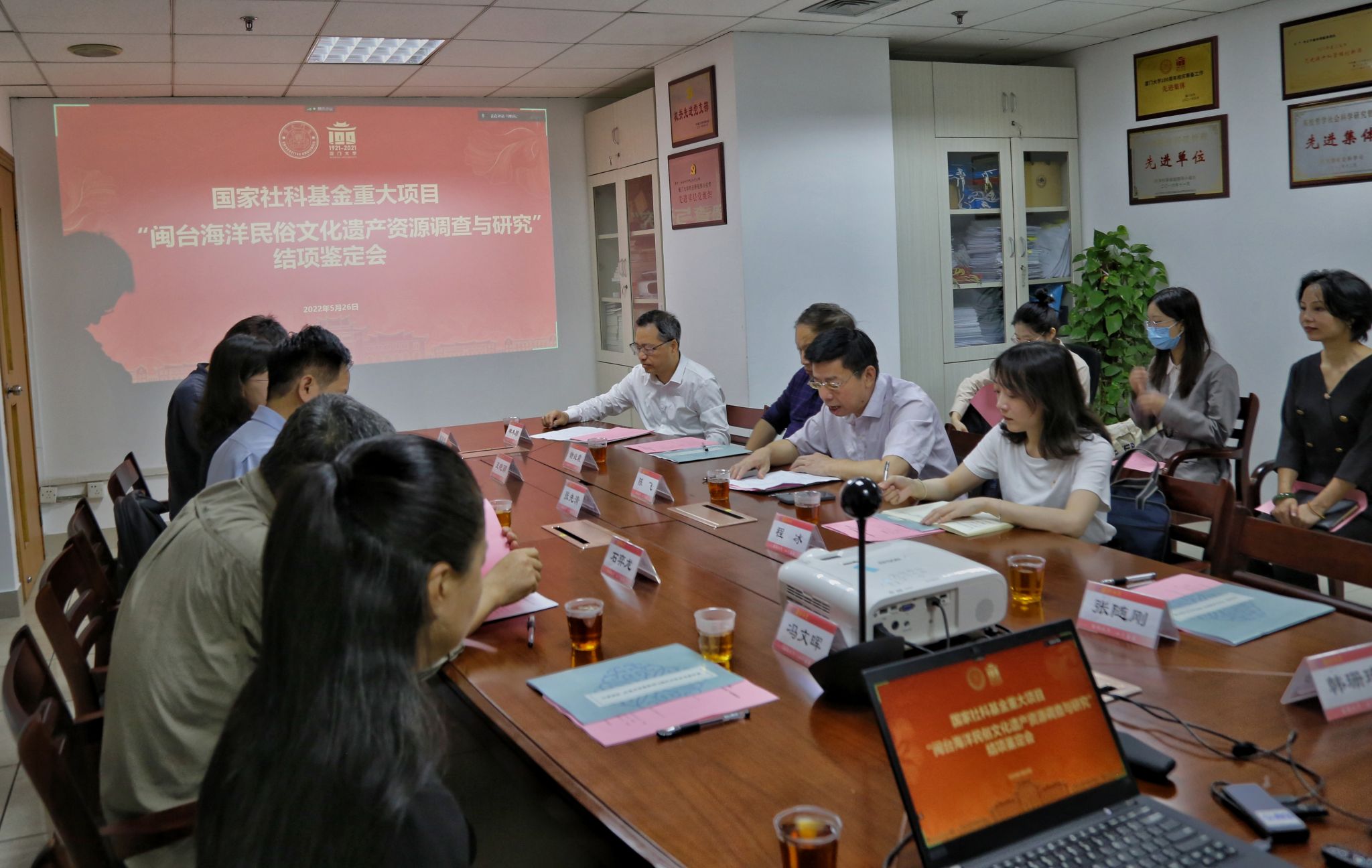 2022年5月26日上午,由我校社会与人类学院副院长张先清教授担任首席专家的国家社会科学基金重大项目“闽台海洋民俗文化遗产资源调查与研究”结项鉴定会在思明校区主楼1120会议室举行。本次结项鉴定会采用线上线下结合的方式,出席现场会议的领导和专家有福建省社科联党组成员、秘书长、省社科规划办主任陈飞,厦门大学社科处副处长林木顺,福建师范大学闽台区域研究中心原主任谢必震教授,厦门大学社会与人类学院党委书记王晓丽,厦门大学社会与人类学院副院长冯文晖等。省社科规划办主任陈飞主持开幕式。