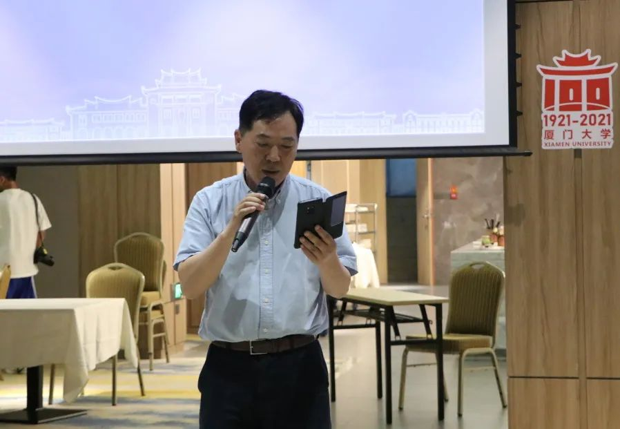 李东宸同学首先表达了自己对于老师、同学和学院的感谢之情。他感慨道,在如白驹过隙的三年时光中,他有幸见证了学院由初建到如今发展得蒸蒸日上,见证了厦门大学建校100周年的盛大境况与中国共产党成立100周年的伟大历史时刻,让他对包括自己在内的青年一代的使命与责任有了更深的认识。他认为,毕业是人生中有又一起点。站在新的起点上,青年一代应真正做到习近平总书记说的那样,立大志、明大德、成大才、担大任,有一份热,发一份光,将青春华章书写在祖国大地上。