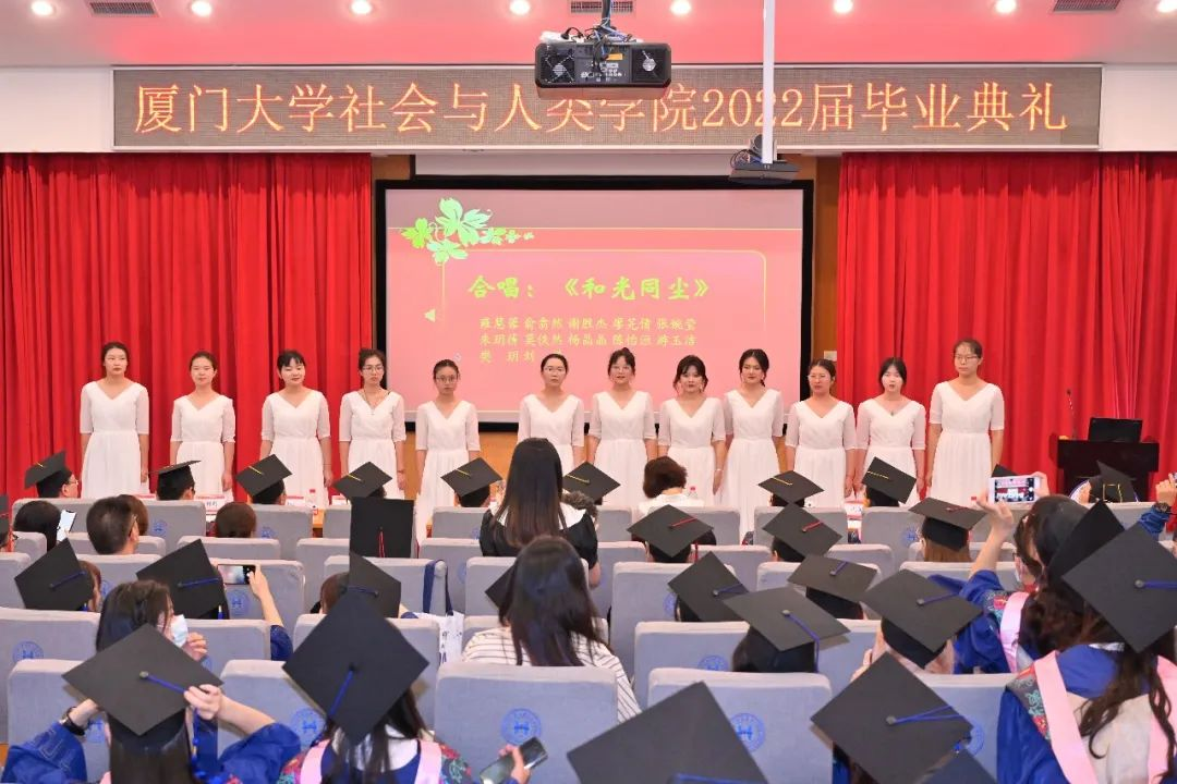 在典礼正式开始之前,社会与人类学院合唱团的同学们为大家献上一曲《和光同尘》,激励毕业生们在前路之上,心怀梦想,努力付出,继续耕耘。