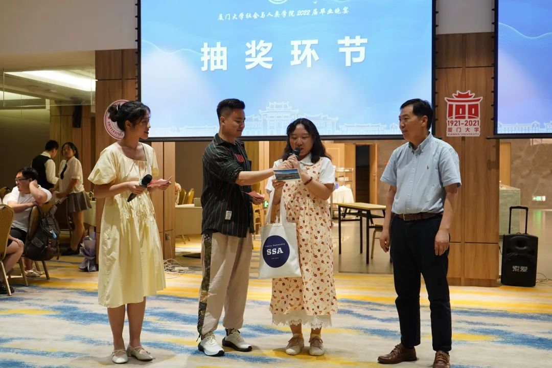 最后,院长胡荣教授上台抽取本次晚宴的特等奖,并高歌一曲《祝福》表达自己对毕业生们的期许,把整场宴会的氛围推至顶峰。在随后的自由互动中,团委书记石林伟老师唱起《朋友》,晚宴在音乐声中徐徐落幕。但真正的朋友从不因一次宴席的结束而告终,正如毕业生们的友情之火将在毕业后燃烧很多很多年。