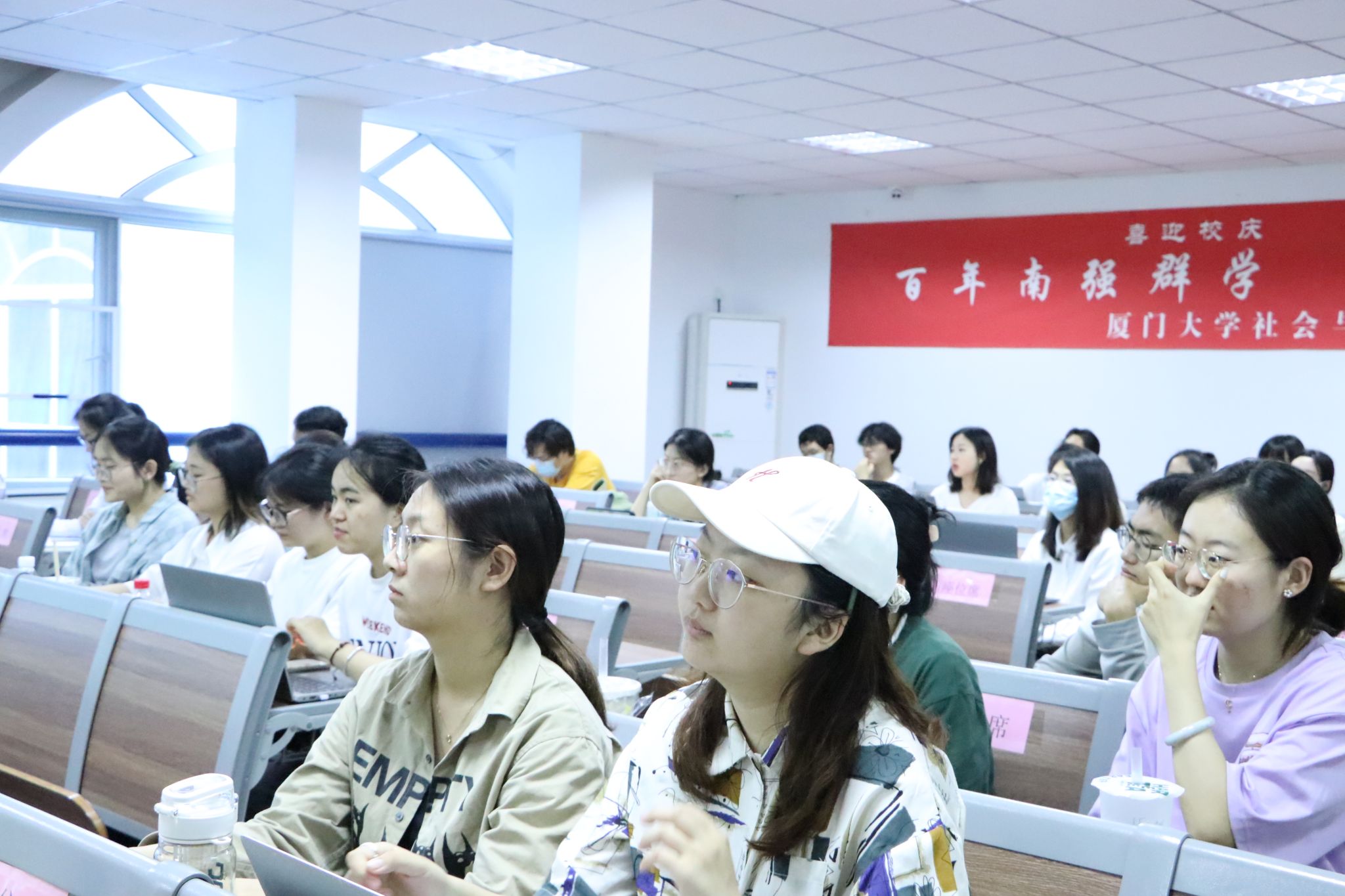 5月26日下午,我院魏爱棠教授的《老年社会工作》课程在曾呈奎楼B栋203教室举行。泰康之家鹭园服务总监王讴、社工主管詹梦琳,厦门市金霞辉养老服务有限公司、厦门市湖里区霞辉老年社会服务中心创办人林佩芬受邀参加本次课程,分别给学生们带来了机构养老服务和社区居家养老服务的主题分享。