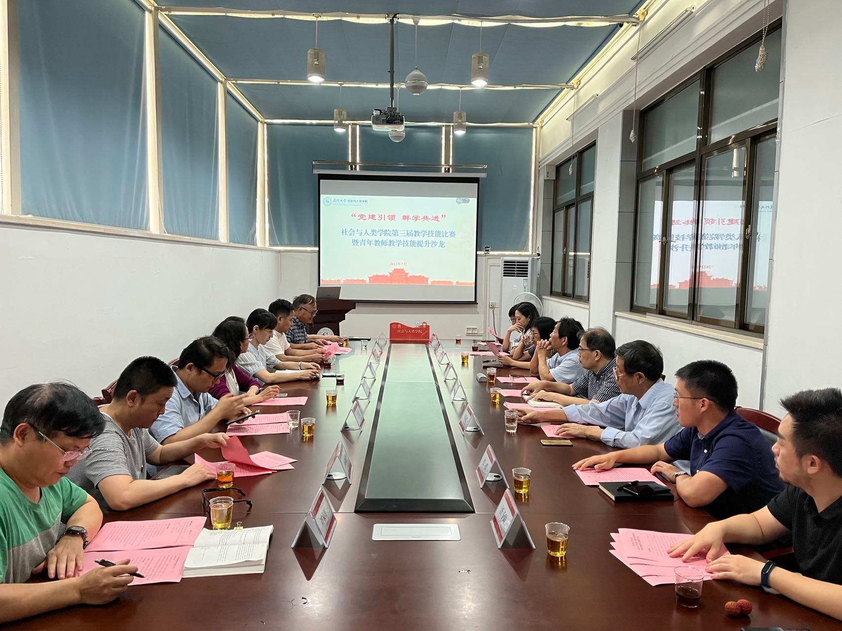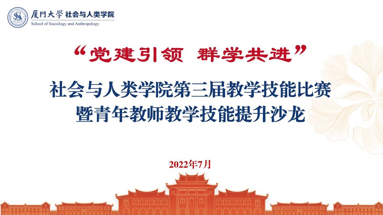 7月19日上午,由厦门大学教师发展中心和社会与人类学院联合举办的“党建引领 群学共进”——社会与人类学院第三届教学技能比赛暨青年教师教学技能提升沙龙在曾呈奎楼B栋二楼举行。厦门大学教师发展中心党支部书记、中心副主任薛成龙,中心教学指导委员会主任朱水涌、专家郑尚宪、专家郑宏,社会与人类学院党委书记王晓丽,副院长张先清,党委委员、人类学与民族学系教工党支部书记蓝达居,社会学系主任易林,社会工作系主任助理杨凌燕,2019级本科生唐晓宇,以及部分师生代表参加了活动。社会学系汪子臻、人类学与民族学系张群、社会工作系陈祺祺三位教师参加比赛。学院党委副书记毛毛为比赛致辞。