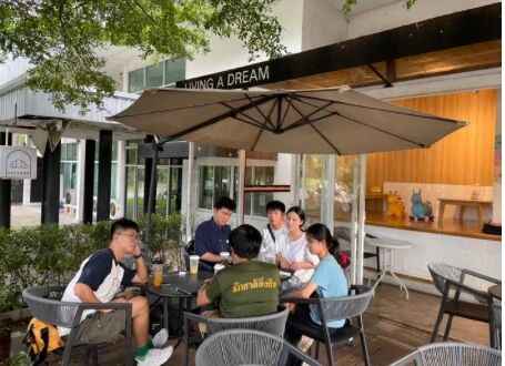 罗思雨小组聚焦清迈高校留学生群体,围绕清迈留学生的留学动因、在泰生活及生涯规划展开调研。小组成员在出发前就围绕访谈方法展开培训,并在完成线上预访谈后修订访谈提纲。抵达清迈后,小组成员在带队老师的指导下不断提高自己对提问技巧的理解,在停顿节奏与眼神交流中领悟访谈的艺术,并在每日访谈过后交换访谈内容和心得,由指导老师给出指点。聆听受访者的故事让原本单一的留学生形象变得饱满而立体。最终,调研小组决定将泰国留学群体的留学决策放置在人生史和留学生的生命历程中来理解。醇香的泰茶、故事与不断成长的专业能力,共同织就了这次充实幸福的田野体验。