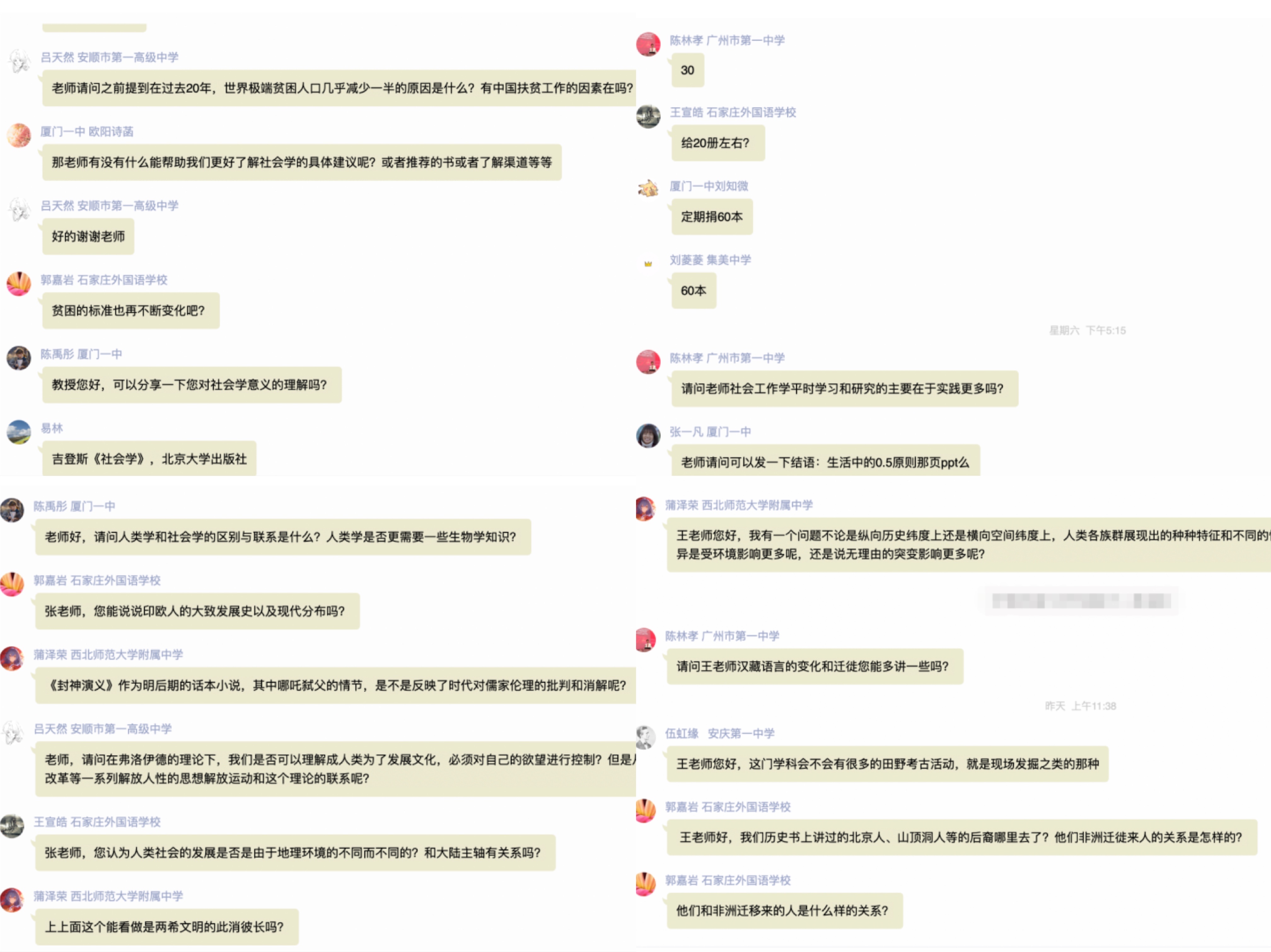 丰富精彩、干货满满的讲座为同学们打开了社会学、人类学、社会工作专业的大门,经过吸收学习和思考交流,同学们的问题也纷至沓来。