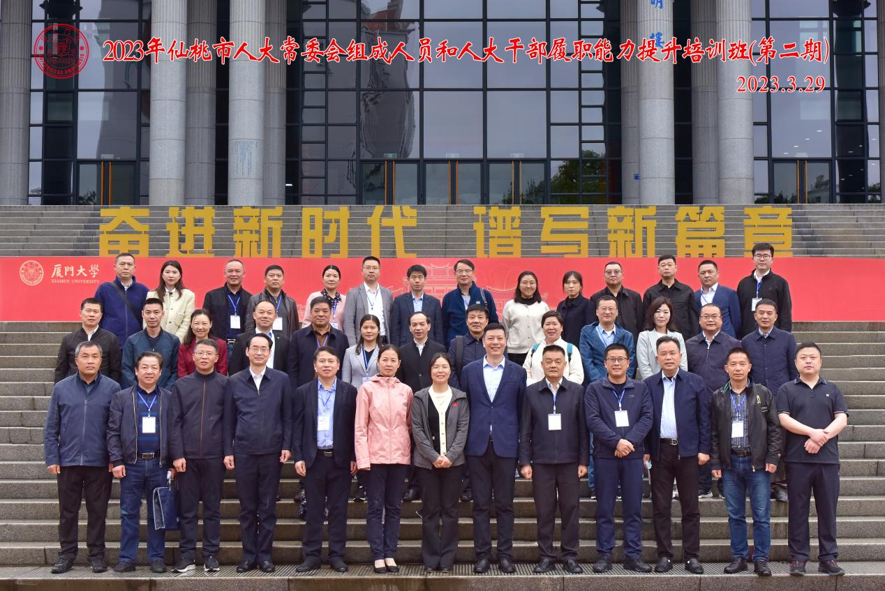 2023年3月27-30日,由我院承办的“2023年仙桃市人大常委会组成人员和人大干部履职能力提升培训班(第二期)”顺利举办。厦门大学社会与人类学院党委副书记陈夷出席了开班仪式,来自仙桃市人大系统的干部参加了本次培训。