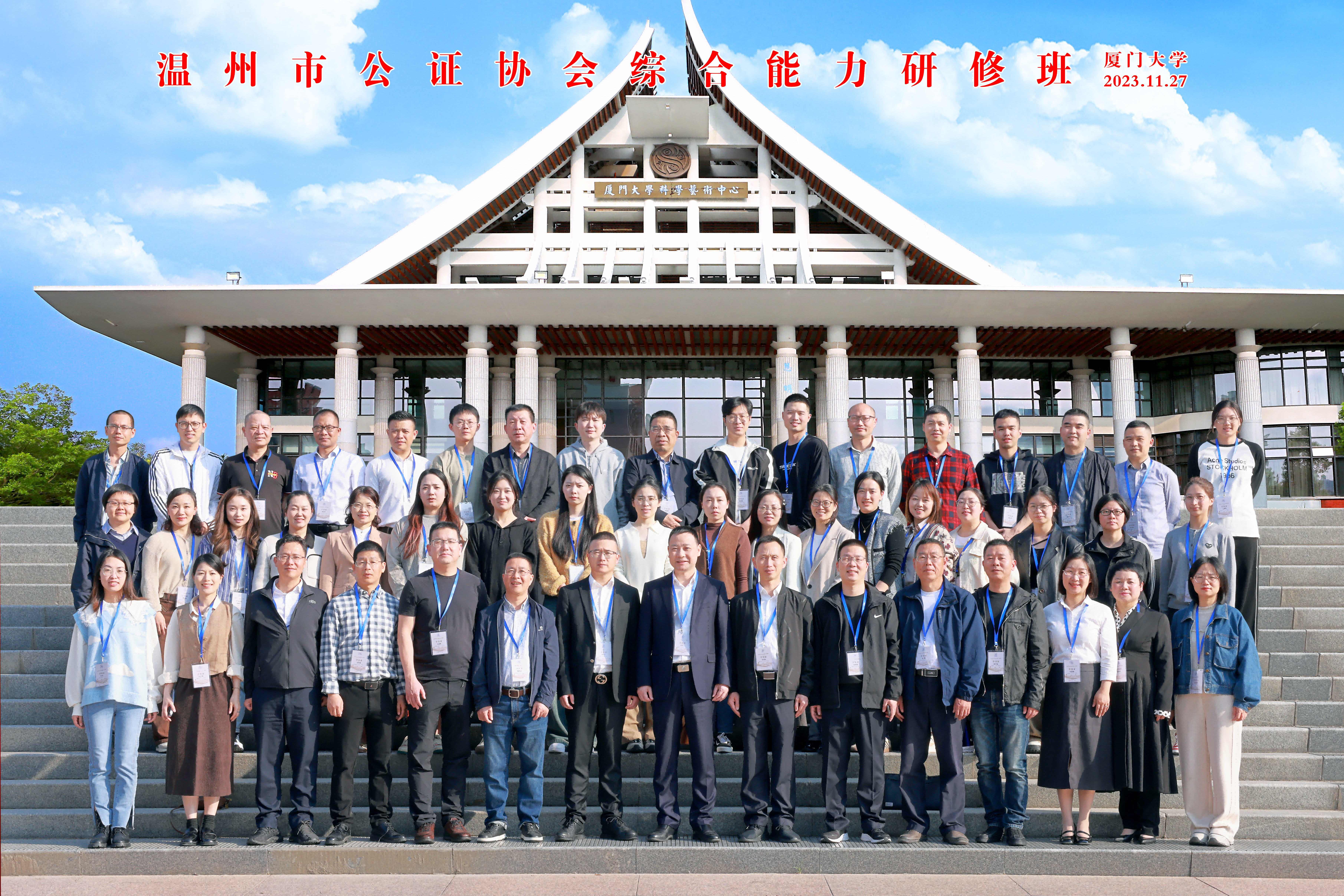 2023年11月27日-12月1日,“温州市公证协会综合能力研修班”顺利举办。温州市司法局党委委员、副局长刘贤平,温州市司法局公共法律服务管理处处长尤向阳,厦门大学社会与人类学院副院长张先清出席开班仪式,温州公证系统的干部们参加了本次培训。