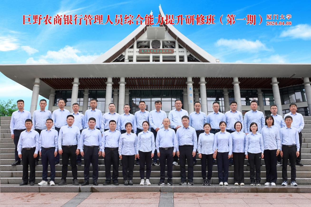 2024年4月7-12日,由我院承办的“巨野农商银行管理人员综合能力提升研修班(第一期)”顺利举办。厦门大学社会与人类学院副院长冯文晖,山东巨野农村商业银行股份有限公司党委书记、董事长谢威,党委委员、副行长陈旭东、王玉玲出席开班仪式,来自山东巨野农村商业银行股份有限公司总行及支行的管理人员参加了本次培训。