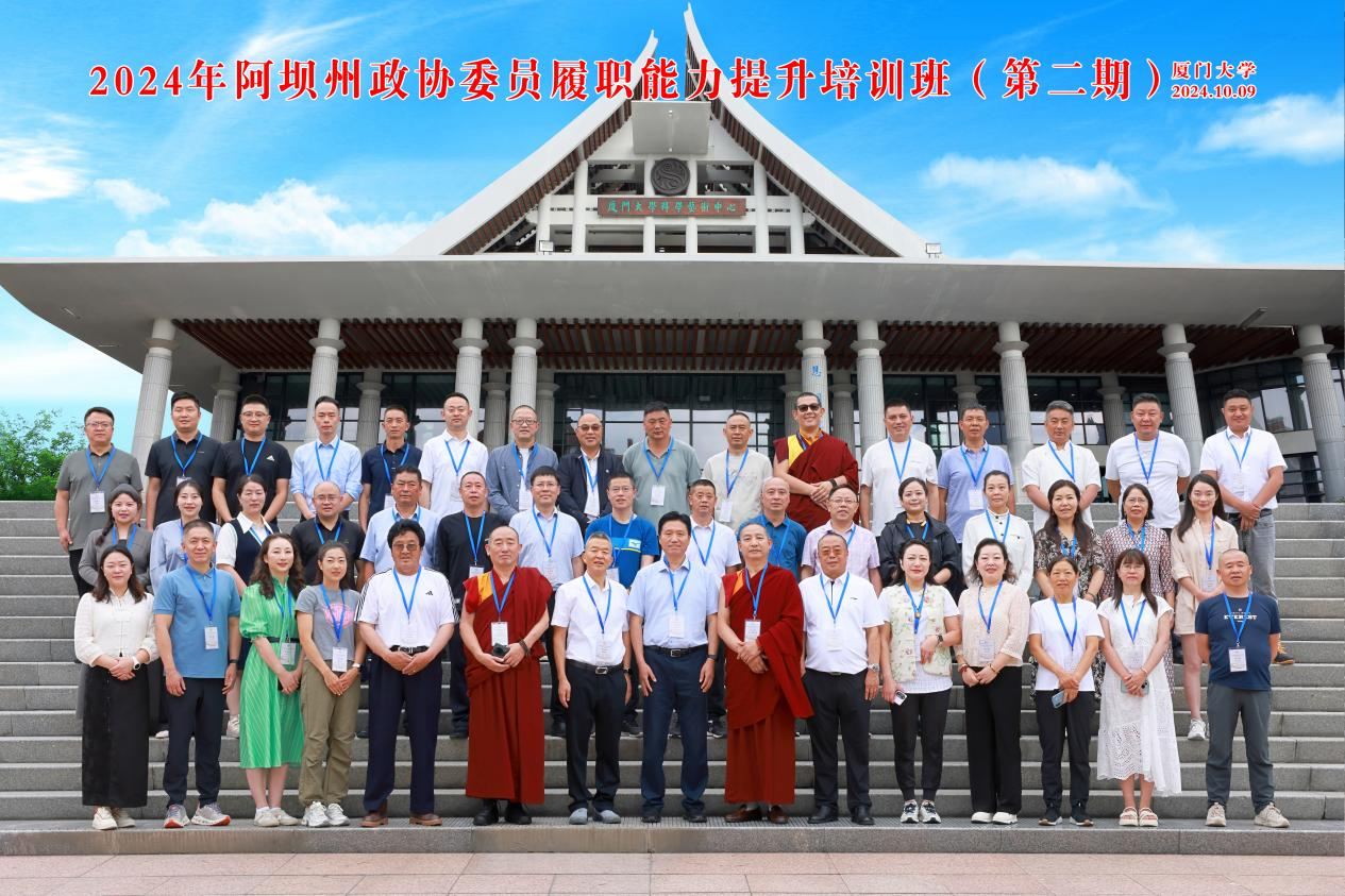 2024年10月9-13日,由我院承办的“2024年阿坝州政协委员履职能力提升培训班(第二期)”顺利举办。阿坝州政协党组成员、副主席张德发,厦门大学社会与人类学院党委副书记毛毛出席开班仪式,来自阿坝州政协的委员及干部们参加了本次培训。