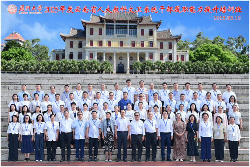 2025年5月11-17日,由我院承办的“2025年度云南省人大教科文卫系统干部履职能力提升培训班”顺利举办。云南省人大常委会副主任徐彬,云南省人大教科文卫委主任委员杨榆坚、副主任委员蒙冬梅,云南省人大常委会办公厅副主任刘辉,厦门大学社会与人类学院院长邓燕华出席开班仪式,来自云南省人大科教文卫系统的干部们参加了本次培训。