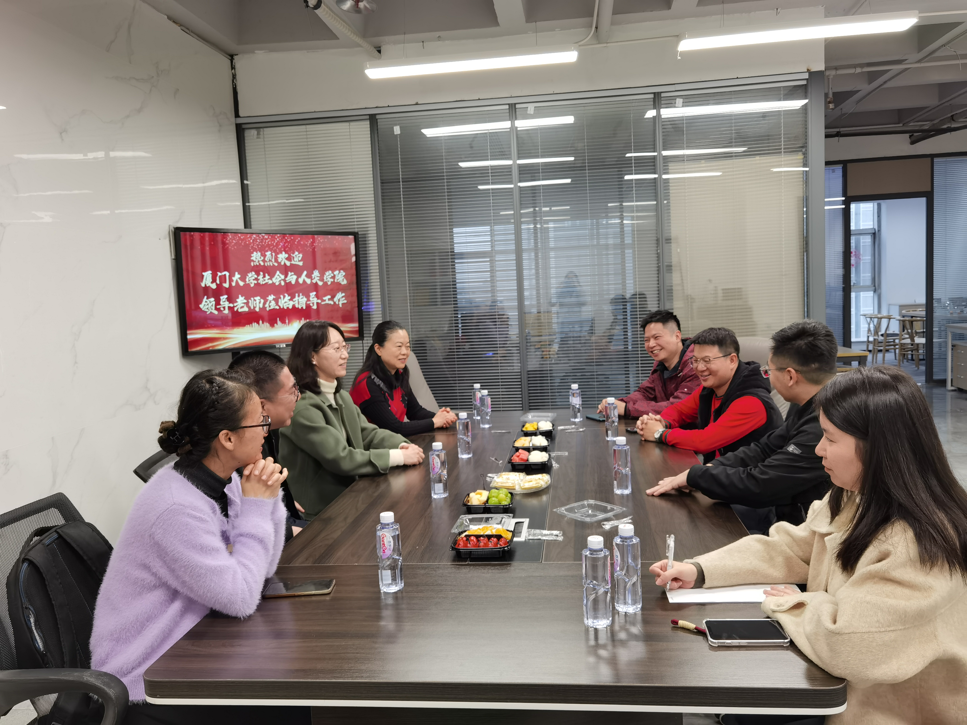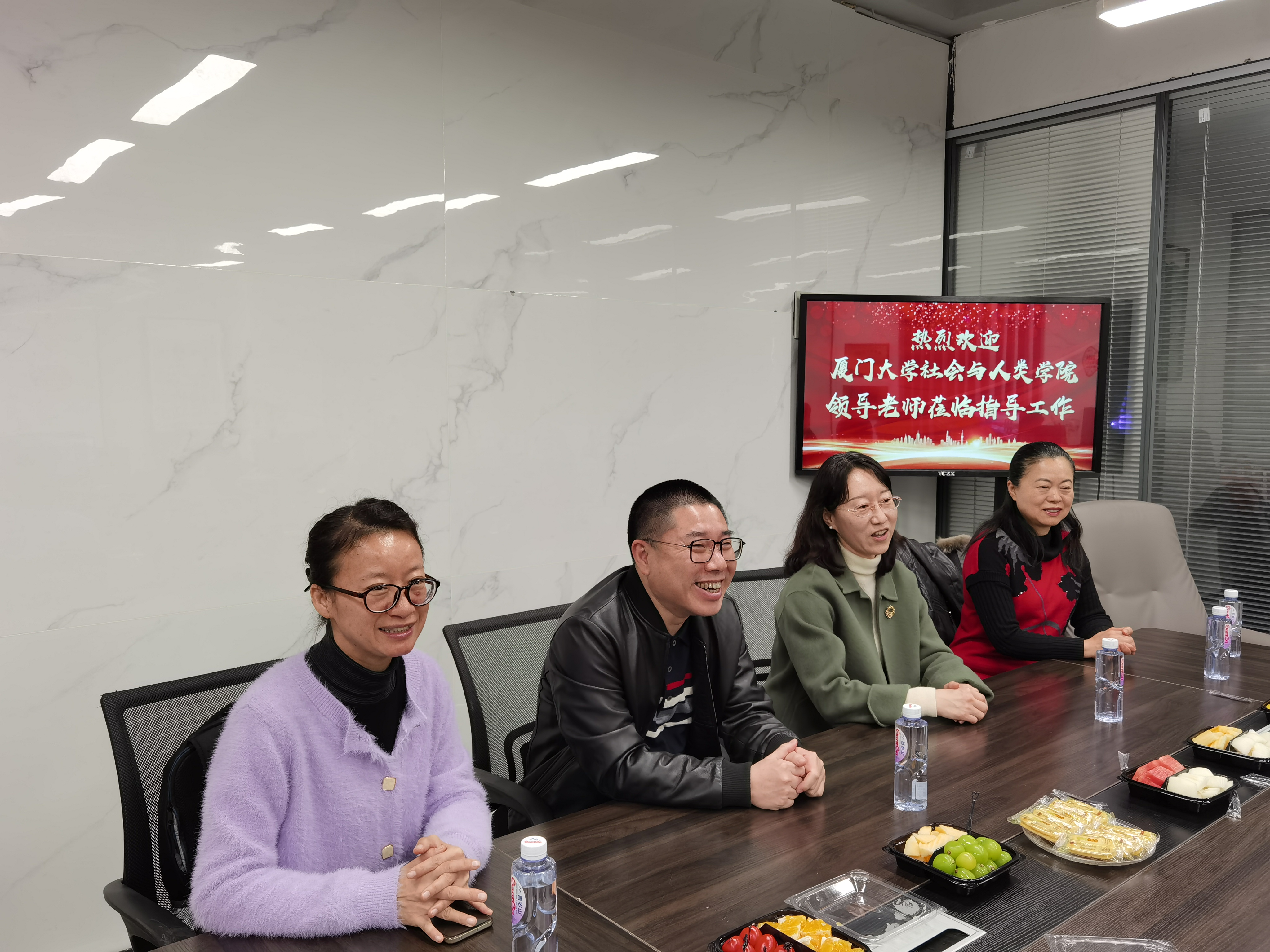2月4日立春时节,社会与人类学院党委书记王晓丽,副书记陈夷、毛毛,副院长冯文晖,秘书王雅琳、尚丽丽一行,前往厦门大学厦门校友会社会与人类学院分会走访座谈。学院厦门校友会会长王哲、副会长兼秘书长吴小杭、副秘书长魏高生等对学院一行人员的到访表示欢迎。