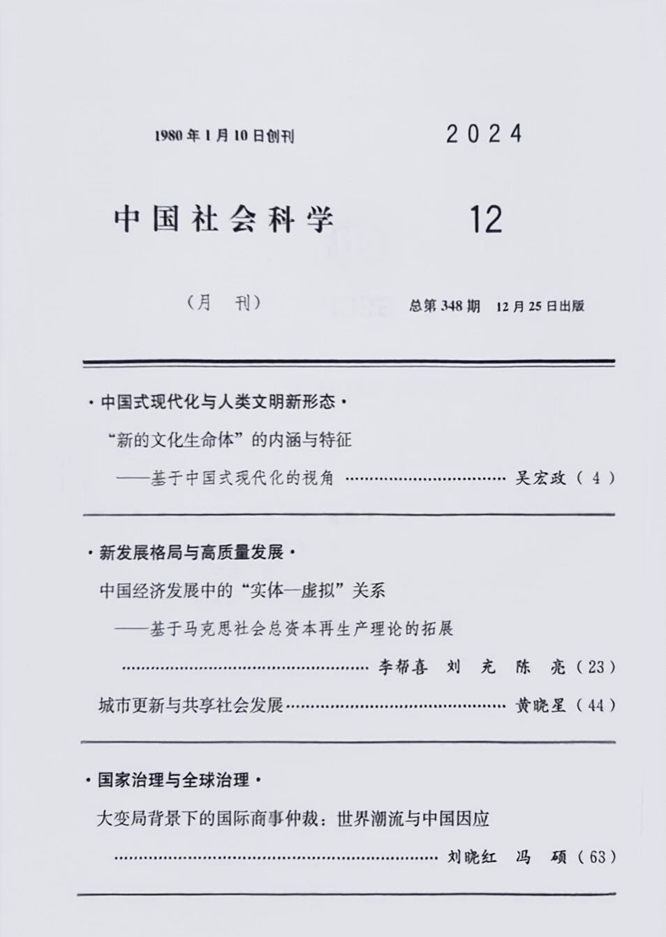 近日,《中国社会科学》杂志2024年第12期刊发我院黄晓星教授所撰《城市更新与共享社会发展》一文。黄晓星教授认为,随着城市快速发展,原有以推动经济增长为主导的发展模式出现较多问题。城市高质量发展是新发展格局的必然要求,城市更新是对既有城市区域、社区的干预和改造。