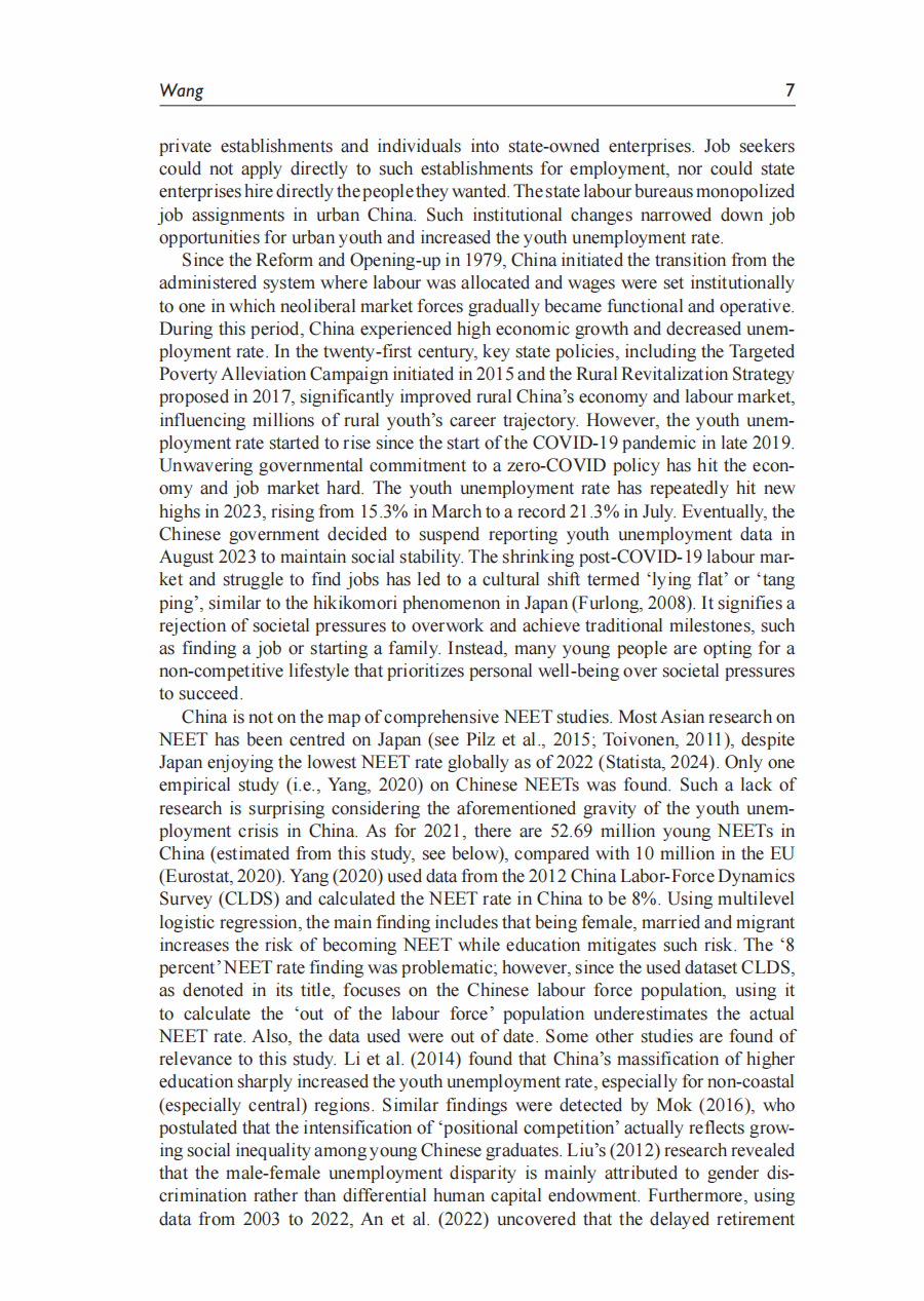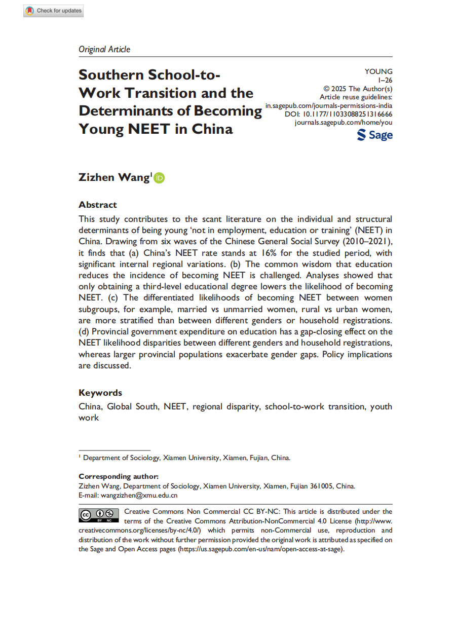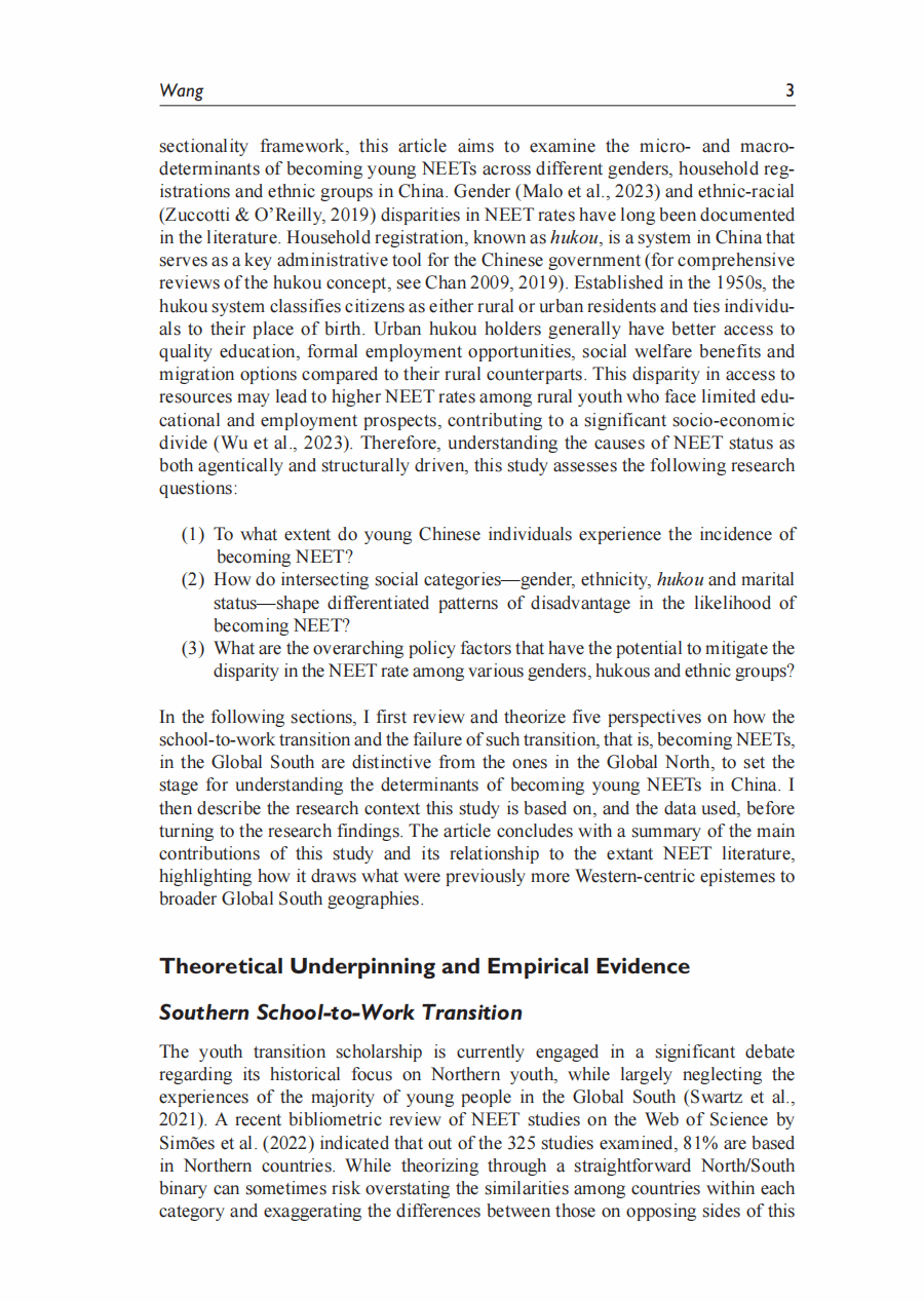 全球南方青年学校到职场的转型和中国尼特族的影响因素分析