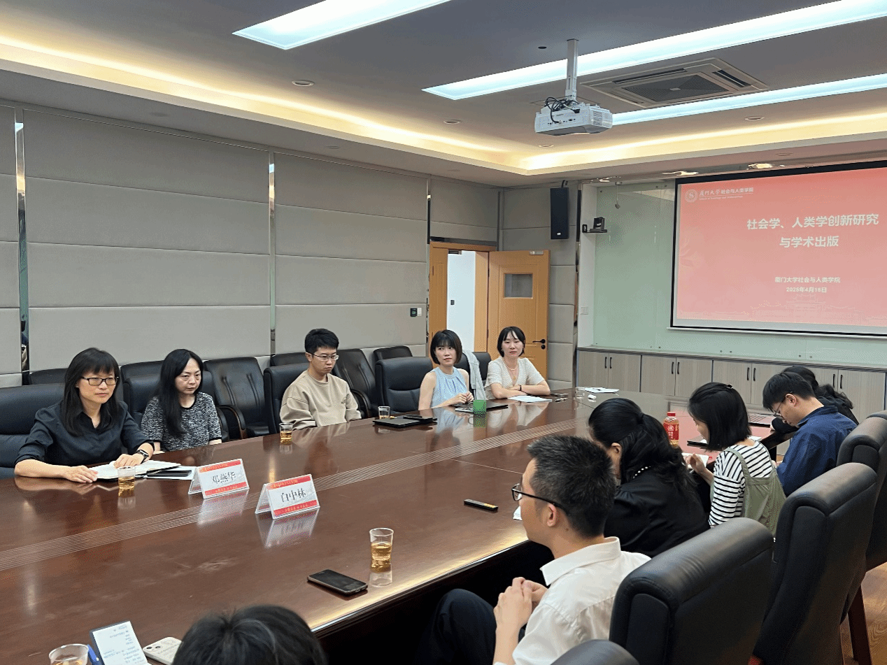 4月18日晚上,“社会学、人类学创新研究与学术出版”座谈会在海韵园行政楼A栋302会议室举行。本次座谈会邀请到商务印书馆编审、商务印书馆信息公司总经理、中国政法大学博士生导师白中林对国家社科基金中华外译项目申报以及学术专著出版做分享。座谈会吸引了来自社会与人类学院、外文学院、马克思主义学院、公共事务学院、哲学系等单位的青年教师及博士研究生的参与。
