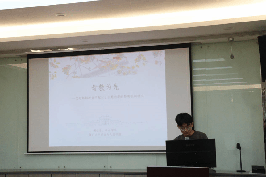 第四单元由厦门大学王利兵老师主持,台湾中研院林宗弘老师和厦门大学刘子曦老师评议。台湾清华大学硕士生陈睿龙作题为《中国大陆单身生育女性的困境》的汇报;厦门大学博士生胡艳娜作题为《跨越隔离:“举铁”女性的空间再造研究》的汇报;厦门大学硕士生谢佳乐作题为《母教为先:父母婚姻教育匹配对子女婚恋观的影响机制研究》的汇报;台湾清华大学硕士生陈颖颖作题为《暂别“内卷”:当代中国青年“间隔年”的实践与自我认同》的汇报。